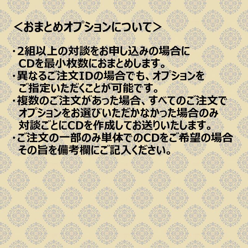 ※おまとめオプションをご希望いただいた場合、複数のご注文のCDを最小枚数におまとめいたします。