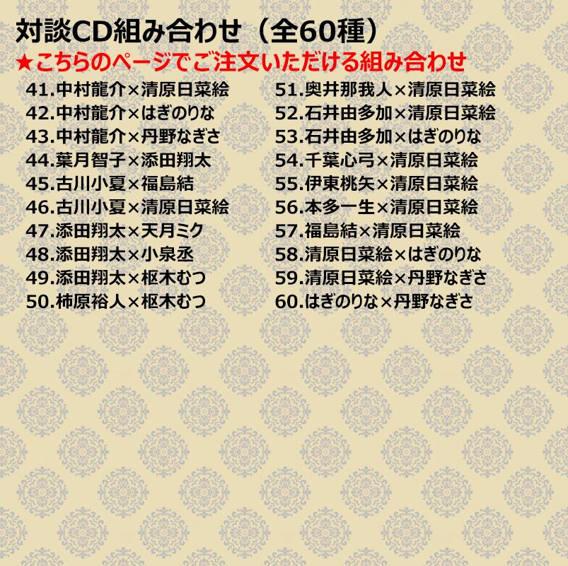 出演キャスト2名による対談CDです。